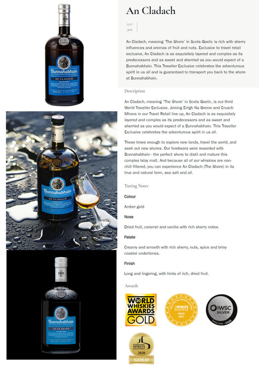 BunnahabhainDESCRIPTION An Cladach, meaning ‘The Shore’ in Scots Gaelic, is our third World Traveller Exclusive. Joining Eirigh Na Greine and Cruach Mh...
