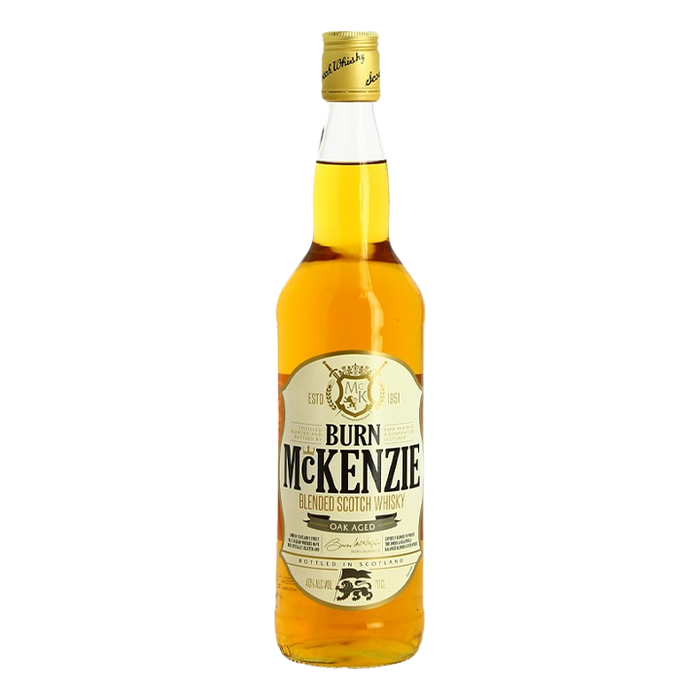 The Burn McKenzie Blended Scotch Whisky is a high quality 100% pure Scotch whisky from Glasgow. This fine Scotch whisky is made from a combination of only the best sorts of whisky from more than 10 different distillers. Every whisky used, has aged for at least 3 years, and some even longer. Established in 1951, Burn Mckenzie is produced using a blend of the finest malt and grain whiskies.