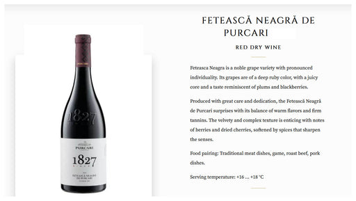 PurcariFeteasca Neagra is a noble grape variety with pronounced individuality. Its grapes are of a deep ruby color, with a juicy core and a taste remini...
