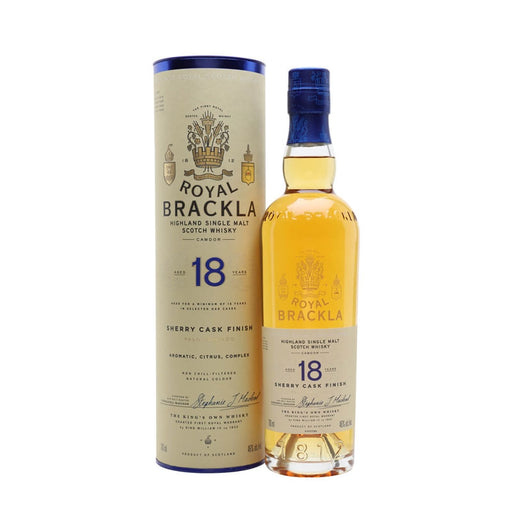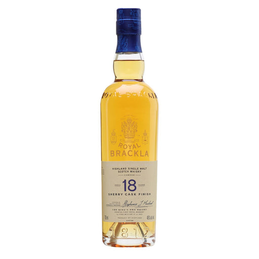 Royal BracklaROYAL BRACKLA18 YEAR OLD SINGLEMALT WHISKY Finished in: PALO CORTADO SHERRY CASKS Enticing and complex Rich spices, creamy vanilla, big, succu...