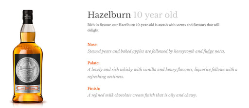 HazelburnDESCRIPTIONPart of the Hazelburn core range, this is a 10 year old bottling of Hazelburn single malt Scotch whisky from the Springbank distillery i...