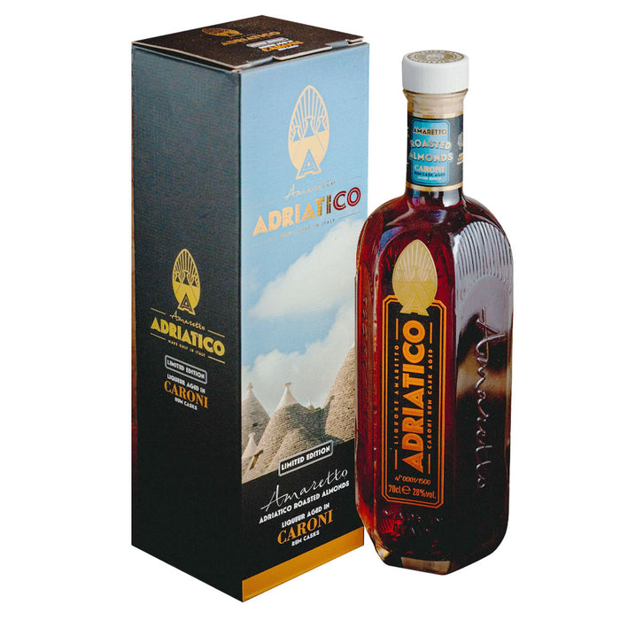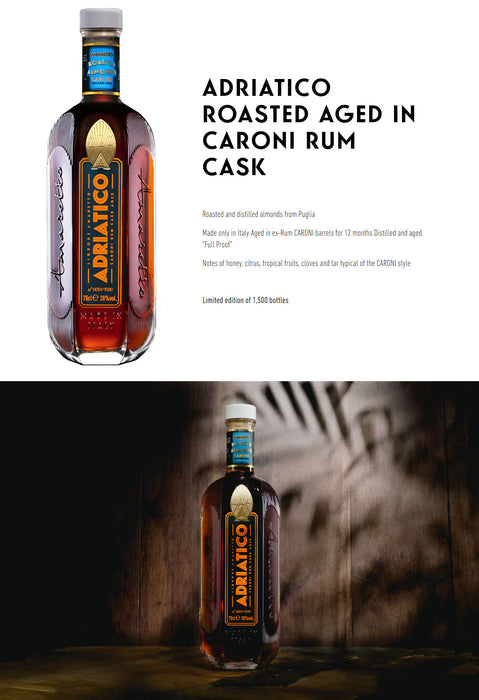 The Adriatico Amaretto liqueur is produced using 100% natural Italian ingredients, including almonds sourced from Apulia. For this limited edition, Adriatico took the bold step of aging it for 12 months in Caroni rum casks, with the collaboration of Luca Gargano, a renowned rum collector, who donated three Caroni casks. The marriage of Adriatico with the aromatic profile of this extreme rum offers an intense experience. This special edition is limited to 1500 bottles worldwide, and each bottle is numbered.
