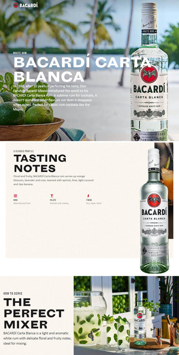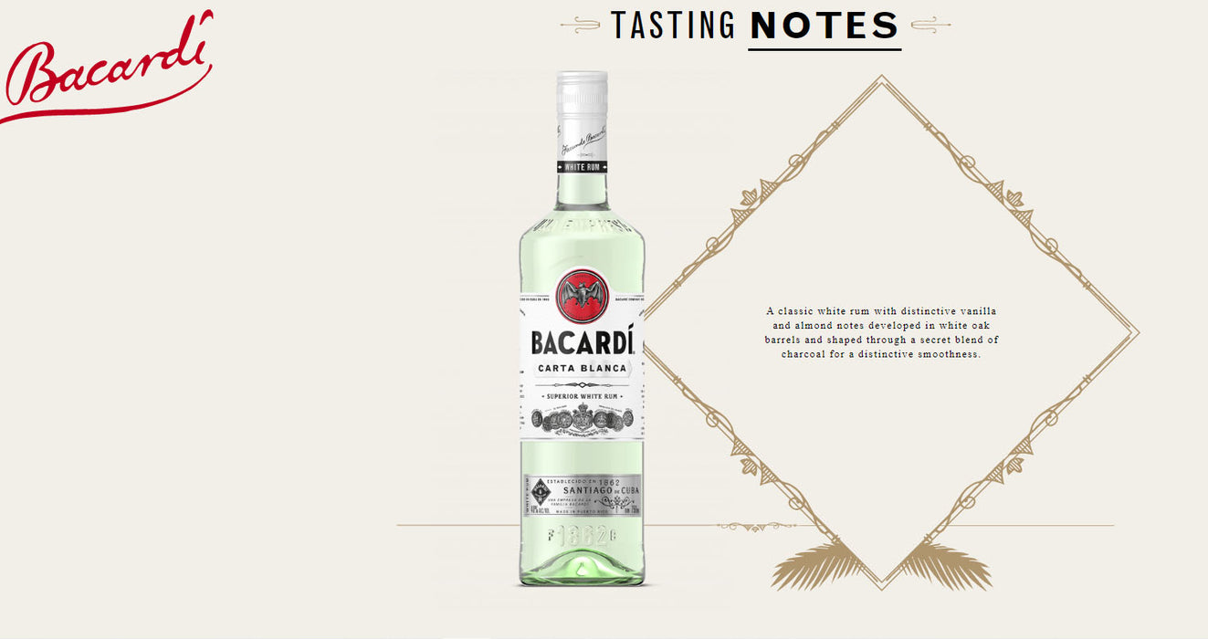 The Bacardi Superior White Rum tastes pure and clean, with a pleasant citrus flavour. Very fresh on the nose with zippy lemon notes to the fore and a hint of pear drops. Very smooth, no alcohol burn. The finish is clean and smooth.