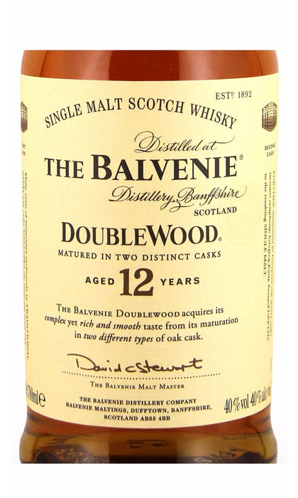 The Balvenie DoubleWood is a 12 year old single malt which gains its distinctive character from being matured in two wood types. Over the period of maturation it is transferred from a traditional oak whisky cask to a first fill European oak sherry cask. Each stage lends different qualities to the resulting single malt ~ the traditional casks soften and add character, whilst the sherry wood brings depth and fullness of flavour.