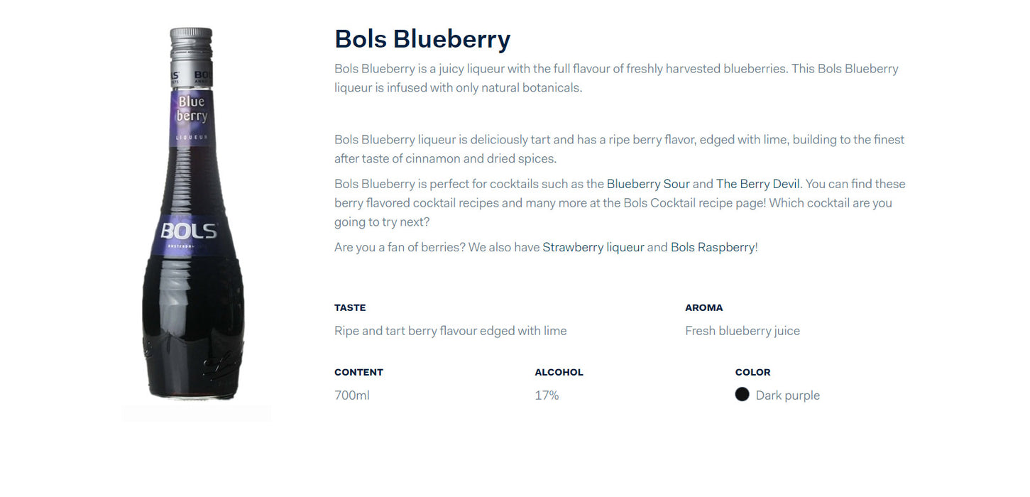 full flavour of freshly harvested blueberries. This Bols Blueberry