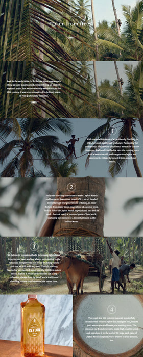 Made in Sri Lanka, Ceylon Arrak is made from coconut palm sap that is harvested, distilled and aged in Halmilla, the island’s indigenous wood. Traditionally, the sap is harvested by ‘toddy tappers’, men who climb the palm trees to gather the precious liquid. Ceylon Arrack is made by Rockland Distilleries Tlc, a pioneering company that has been producing premium quality Arrak since 1924. Serve on ice or in a long drink topped up with Fever Tree Ginger Ale for an authentic Sri Lankan experience.