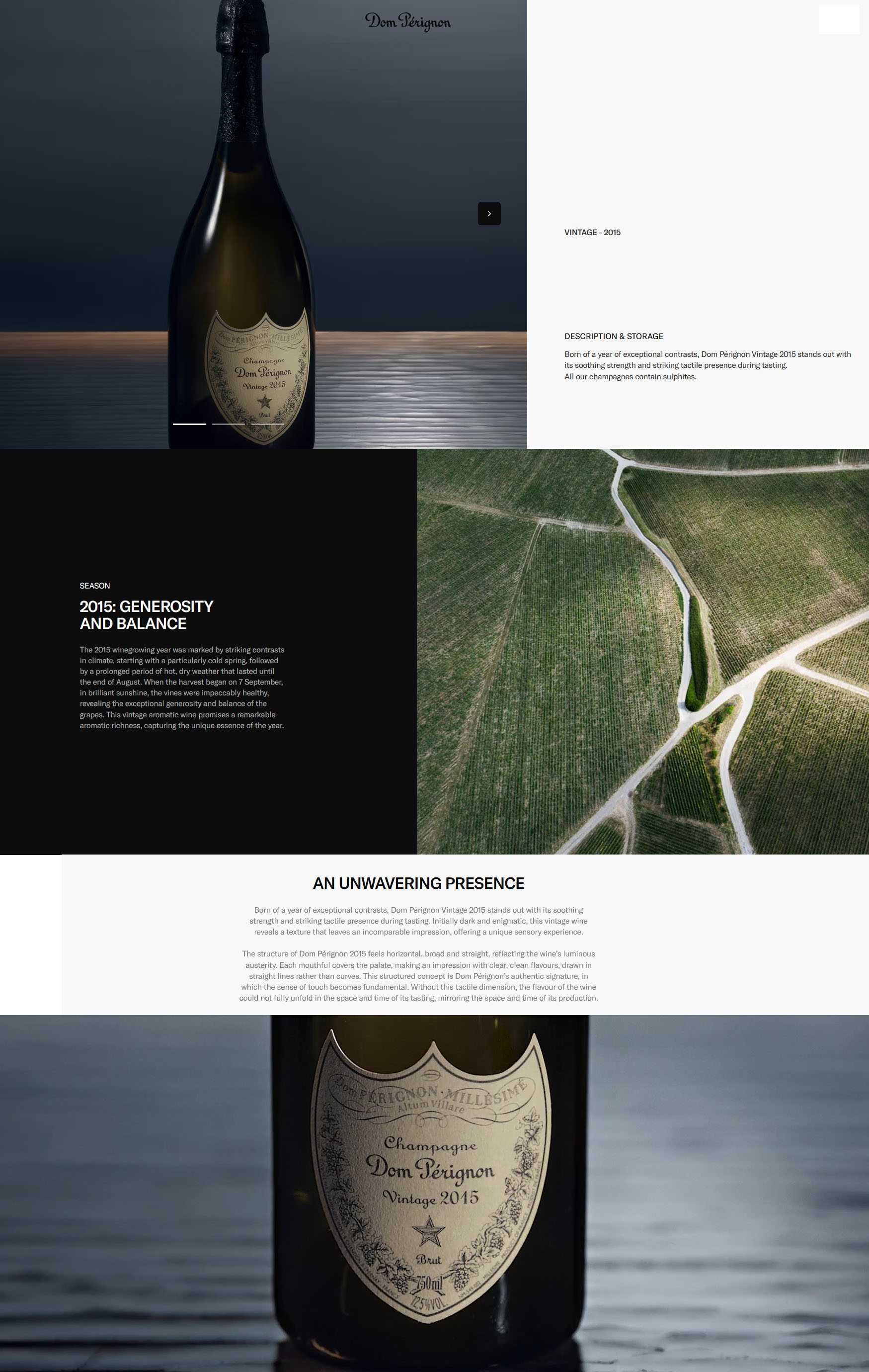 The essential trace of Dom Pérignon, is the way it touches the mouth. The tactile sensation is the foundation of Dom Pérignon's taste. The dense matter of Dom Pérignon Vintage 2015 anchors its natural authority.