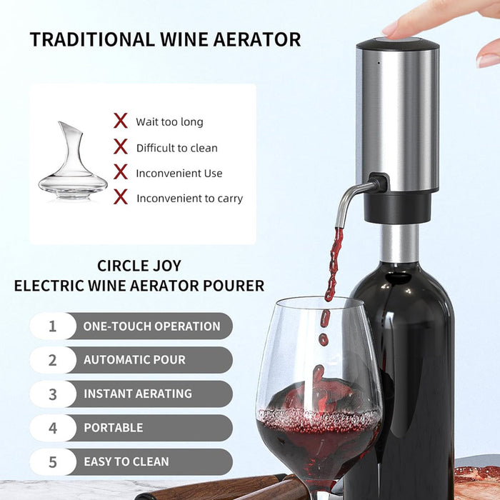 EFFORTLESS POURING AND DECANTING - With the press of a button on the top, this dispenser effortlessly pours wine into your glass. Additionally, it offers a unique decanting feature, allowing you to aerate your wine for enhanced flavor and aroma