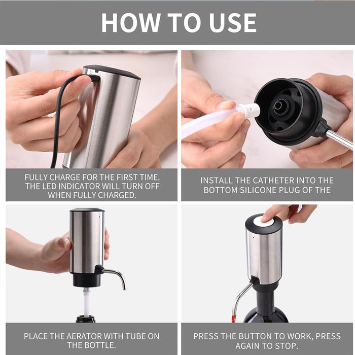 CONVENIENT RECHARGEABLE DESIGN - With a built-in rechargeable battery, this wine dispenser eliminates the need for constant battery replacements. Simply recharge it using the included USB cable, ensuring continuous and hassle-free operation