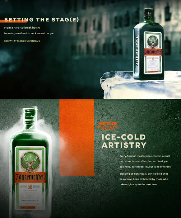 Every German masterpiece contains equal parts precision and inspiration. Bold, yet balanced, our herbal liqueur is no different. The highest-grade herbs, blossoms, roots and fruits from around the globe are crafted into 4 distinct macerates, then combined in modern-day alchemy into our herbal spirit. Every drop of Jägermeister comes from one of the 445 Oak barrels that live in our factory cellar. In the darkness of their depths, the macerates are left to blend and mature for up to a year until they become liquid German perfection. Product may differ from image shown. For illustrative purposes only.