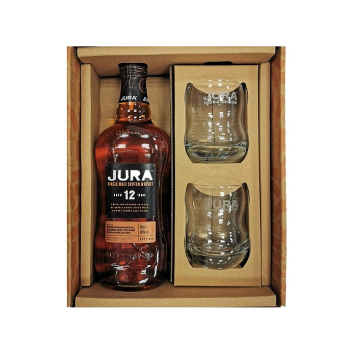 Jura 12 Year Old Single Malt Whisky with 2 Whisky Glasses Gift Set