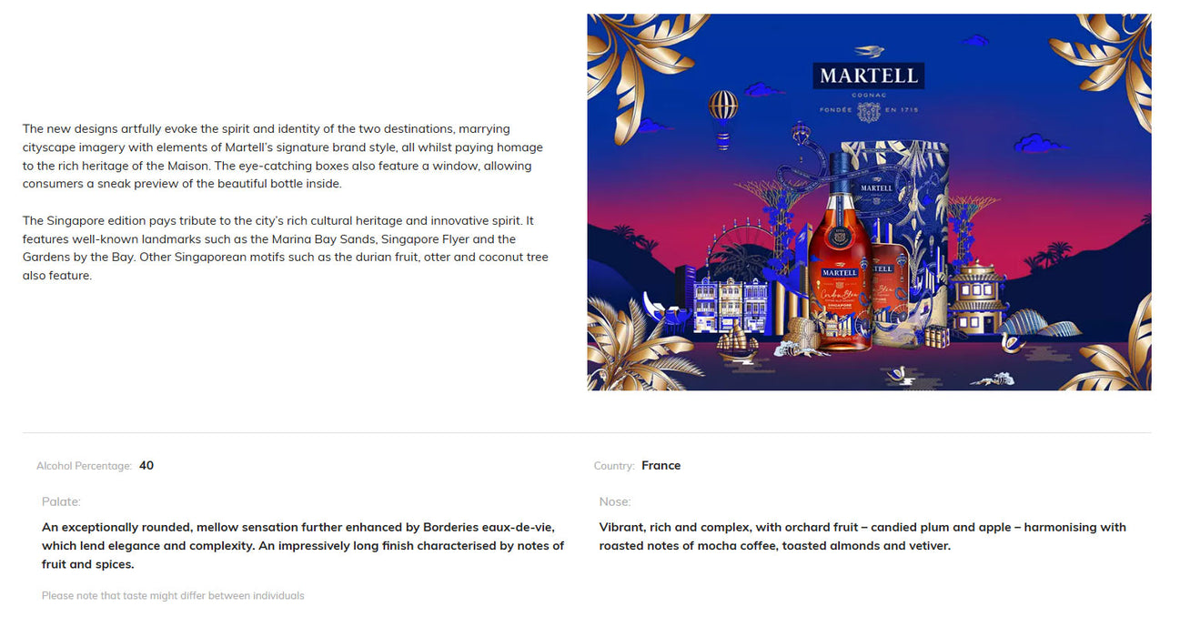 The new designs artfully evoke the spirit and identity of the two destinations, marrying cityscape imagery with elements of Martell’s signature brand style, all whilst paying homage to the rich heritage of the Maison. The eye-catching boxes also feature a window, allowing consumers a sneak preview of the beautiful bottle inside.