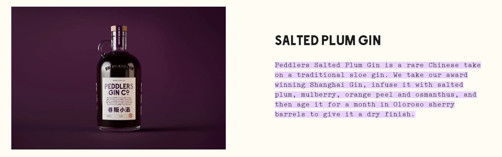 Building on the sloe gin tradition, but with a Chinese edge to it, comes Peddler's Barrel Aged Salted Plum Gin. Inspired by a historical Suan Mei Tang recipe, the team behind Peddlers infuse their original award-winning gin with Suan Mei botanicals (Salted plums, mulberries, hawthorn and osmanthus) for 3 months, before ageing it for a further month in Olorosso Sherry Casks for rounded notes of Vanilla and oak with a dry finish.