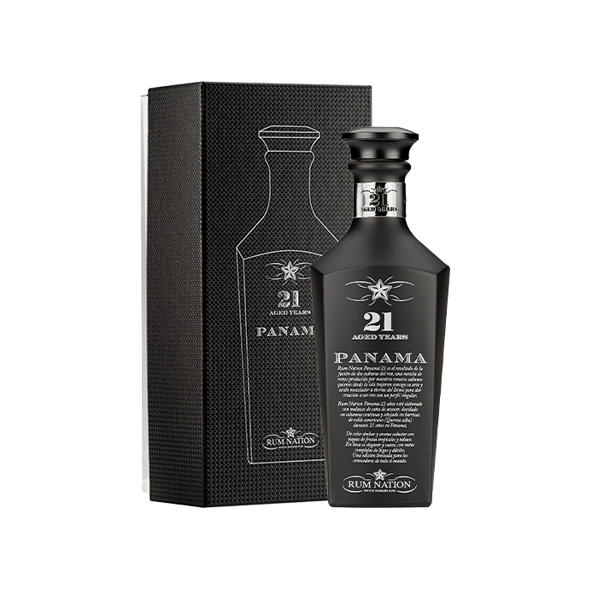 Rum Nation Panama 21 years Old - Decanter Black, is a blend created from the expert hands of the crasftsmen of the best distillery in Panama. Rum Nation Panama 21 years - Decanter Black, is made from sugar cane molasses, distilled in continuous column stills and aged locally in American oak barrels (Quercus alba) for at least 21 years. Its blending recipe, which includes a large percentage of even older rums to give character and complexity, is the pinnacle of decades of tradition and experimentation: elegance, thick sweetness and dried fruits… The perfect deluxe after-dinner sipping rum.