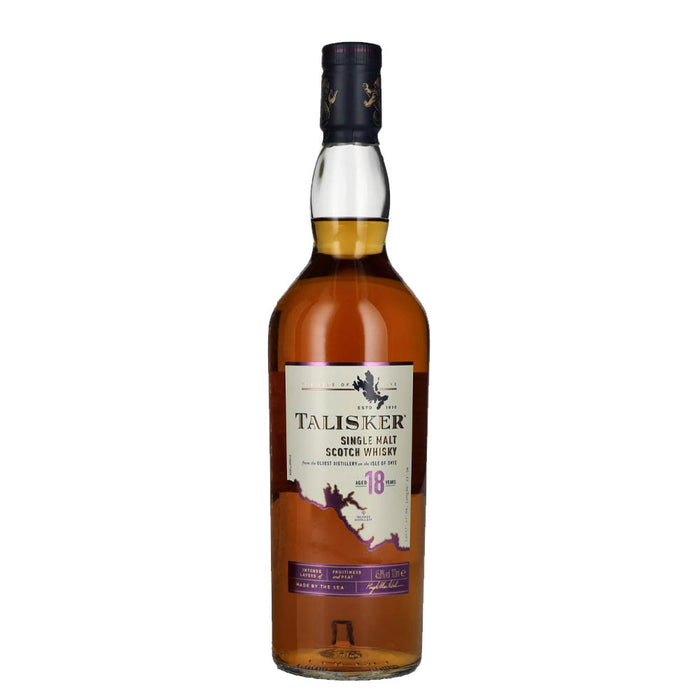 Talisker 18 Year Old is a Single Malt Scotch Whisky from this Island distillery's core range. Aged for 18 years in the distillery's warehouses in Scotland. Bottled at an ideal drinking strength of 45.8%, the perfect level to enjoy the texture and mouth feel of the spirit.